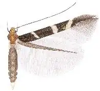 The name of the species, trifasciella, refers to the three silver to pale golden fasciae on the forewing.