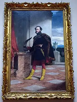The portrait of Count István Széchenyi (Hungarian: Gróf Széchenyi István) is a monumental painting by Austrian painter Friedrich von Amerling. It belongs to the Art Collection of the Hungarian Academy of Sciences in Budapest, where it portrays the founder of the institution. It has the same elaborate Rococo frame as the contemporary painting of From Darkness, the Light by Johann Ender. The painting is probably the most famous portrait of Széchenyi, the greatest statesman of the Hungarian Reform Era.