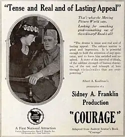 Courage is a 1921 American silent drama film directed by Sidney Franklin and starring Naomi Childers, Sam De Grasse and Adolphe Menjou.[1][2] It was distributed by First National Pictures.