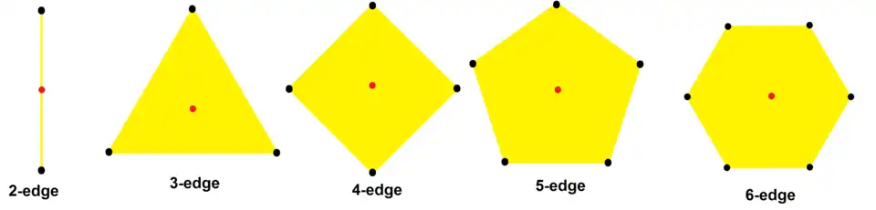 - Two nodes attached by an order-n branch can create an n-gon if the point is on one mirror, and a 2n-gon if the point is off both mirrors. This forms the I1(n) group.