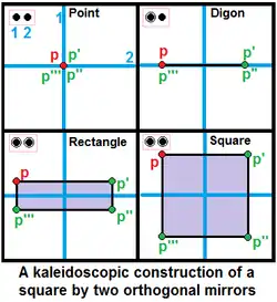 ![]() Two orthogonal mirrors can be used to generate a square, |