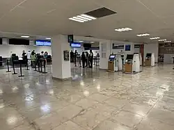 The passenger terminal features 8 boarding gates. Of these, 6 gates are allocated for international flights, and 2 gates for domestic flights. Additionally, the terminal offers all the services that an international airport typically provides, including a VIP lounge.[5] Parking, taxis, and car rental are available at the airport. Additionally, Cozumel Airport is also used for charter flights, executive and general aviation.