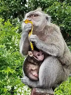 66. ^ Brotcorne, F.; Giraud, G.; Gunst, N.; Fuentes, A.; Wandia, I. N.; Beudels-Jamar, R. C.; Poncin, P.; Huynen, M.-C.; Leca, J.-B. (2017). "Intergroup variation in robbing and bartering by long-tailed macaques at Uluwatu Temple (Bali, Indonesia)". Primates. 58 (4): 505–516. doi:10.1007/s10329-017-0611-1. PMID 28516338.