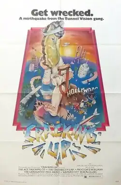 Cracking Up is a 1977 American independent anthology sketch black comedy film, directed by Rowby Goren and Chuck Staley. The film was a collaboration between numerous comedy troupes of the 60s and 70s, many of which were former Second City members, including Ace Trucking Company, The Credibility Gap, The Graduates, and The Pitschel Players. The frame story for the sketches is that after California is devastated by a 9.7 earthquake two television reporters Walter Concrete (Philip Proctor) and Barbara Halters (Peter Bergman) conduct interviews with survivors, serving as introduction to the sketches.