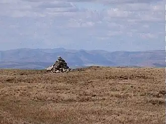 ![]() The summit triangulation point with Mickle Fell in the background | |