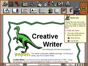 Creative Writer is a word processor released by Microsoft Kids in 1993. Using this program, which is specifically targeted at children,[1] it is possible to create documents such as letters, posters, flyers and stories complete with different fonts, Clip art, WordArt and effects. The interface and environment are set in Imaginopolis with the main helper being a character known as McZee.[2] A sequel, Creative Writer 2, was released in 1996. Both are now discontinued.