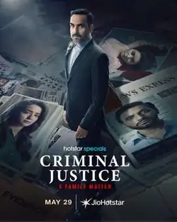Criminal Justice: A Family Matter is an Indian Hindi-language legal drama television series, directed by Rohan Sippy and produced by Sameer Nair.[1][2] Starring Pankaj Tripathi,[3] Mohammed Zeeshan Ayyub, Surveen Chawla, Khushboo Atre and Asha Negi in prominent roles.[4]