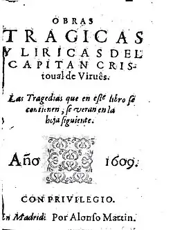 - ^ a b c d One or more of the preceding sentences incorporates text from a publication now in the public domain: Chisholm, Hugh, ed. (1911). "Virués, Christóbal de". Encyclopædia Britannica. Vol. 28 (11th ed.). Cambridge University Press. p. 217.
