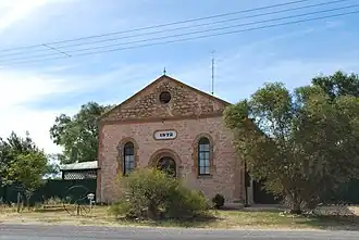 Cross Roads originally had three Methodist churches: a Primitive Methodist (1872), a Bible Christian (1873) and a Wesleyan (1875). The congregations combined in 1900, with the Bible Christian building continuing as the church; however, following a tornado in 1973 which destroyed the Bible Christian church and damaged the Primitive Methodist church, the congregation relocated to the former Wesleyan church. The Wesleyan church now continues as the Cross Roads Uniting Church, while the Primitive Methodist church has been sold.[12][13] The Wesleyan church had also previously been used as the Cross Roads branch of the Moonta Mines Institute for a period from 1902.[14]