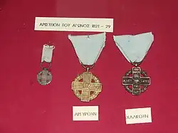The Cross for the War of Independence 1821–29 (Greek: Αριστείον του Αγώνος Ανεξαρτησίας 1821-1829) was a military decoration of Greece for participation in the Greek War of Independence.