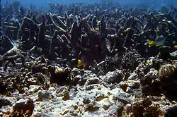24. ^ Belk, D (1975). "An observation of algal colonization on Acropora aspera killed by Acanthaster planci". Hydrobiologia. 46 (1): 29–32. Bibcode:1975HyBio..46...29B. doi:10.1007/bf00038724. S2CID 25260922.