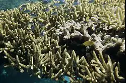 • Large stands of staghorn coral, Acropora species, may collapse and become rubble, reducing the topographical complexity of the reef