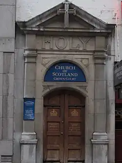 More tangible records date from 1711, when the Crown Court Church was established near Covent Garden. The church was extensively rebuilt in 1909, but remained on the same site. The exterior of the church is scarcely visible as it shares walls with neighbouring buildings, whilst the interior retains a 17th-century feel (despite the early 20th-century rebuilding work.) The church is named after a small courtyard adjacent to its location, but is also known as the "Kirk of the Crown of Scotland". The church building has been listed Grade II on the National Heritage List for England since December 1987.[1]