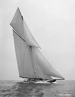 He designed the schooner Adventuress, which was launched in 1913 and has been named a National Historic Landmark.[6] Crowninshield is now best remembered for his working schooners and his America's Cup contender Independence (George Lawley & Son shipyard, 1901) for Thomas W. Lawson. He was also responsible for designing the iconic Dark Harbor 12 1/2 and 17 1/2 sloops.[7] He served as president and general manager of Crowninshield Shipbuilding Company of Fall River, Massachusetts from 1917 to 1926.[8][9] The shipyard built the "Six-Bitters" CG-130 through CG-139 for the United States Coast Guard (CG-133 would later serve as USS YP-45 during World War II).[10][11]