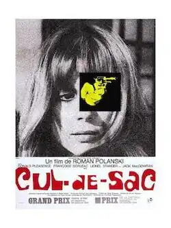 Cul-de-sac is a 1966 British black comedy psychological thriller film directed by Roman Polanski, written by Polanski and Gérard Brach, and starring Donald Pleasence, Françoise Dorléac, Lionel Stander and Jack MacGowran, with Iain Quarrier, Geoffrey Sumner, Renée Houston, William Franklyn, Marie Kean and Trevor Delaney in supporting roles. It also features Jacqueline Bisset in a small role, in her second film appearance. Polanski's second English-language feature, it follows two injured gangsters who take refuge in the remote island castle of a young British couple in the North of England, spurring a series of mind games and violent altercations.