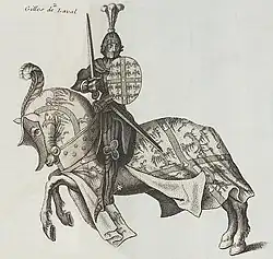 - ^ Le Bouvier, Gilles (1866). Vallet de Viriville, Auguste (ed.). Armorial de France, Angleterre, Écosse, Allemagne, Italie et autres puissances, composé vers 1450 par Gilles Le Bouvier dit Berry, premier roi d'armes de Charles VII, roi de France: texte complet, publié pour la première fois d'après le manuscrit original / précédé d'une notice sur la vie et les ouvrages de l'auteur... par M. Vallet de Viriville (in French). Paris: Bachelin-Deflorenne. pp. 49–50.