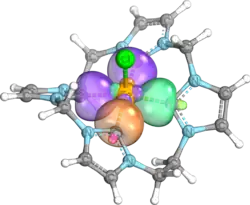 - ^ Anneser, Markus R.; Haslinger, Stefan; Pöthig, Alexander; Cokoja, Mirza; Basset, Jean-Marie; Kühn, Fritz E. (2015-04-20). "Synthesis and Characterization of an Iron Complex Bearing a Cyclic Tetra-N-heterocyclic Carbene Ligand: An Artifical Heme Analogue?". Inorganic Chemistry. 54 (8): 3797–3804. doi:10.1021/ic503043h. ISSN 0020-1669. PMID 25843109.