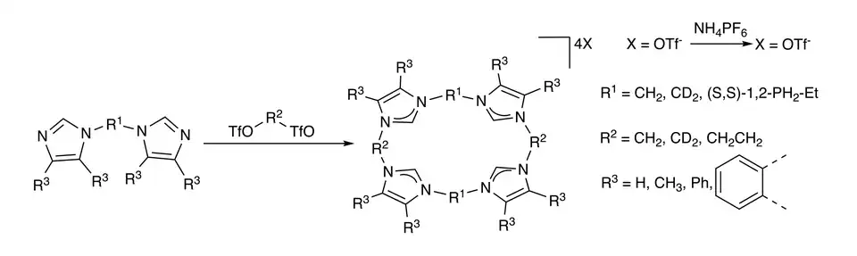 - ^ Bass, Heather M.; Cramer, S. Alan; Price, Julia L.; Jenkins, David M. (2010-08-09). "18-Atom-Ringed Macrocyclic Tetra-imidazoliums for Preparation of Monomeric Tetra-carbene Complexes". Organometallics. 29 (15): 3235–3238. doi:10.1021/om100625g. ISSN 0276-7333.