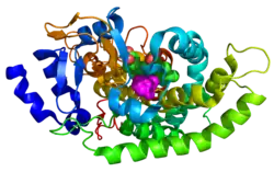 - ^ Hasemann CA, Kurumbail RG, Boddupalli SS, Peterson JA, Deisenhofer J (January 1995). "Structure and function of cytochromes P450: a comparative analysis of three crystal structures". Structure. 3 (1): 41–62. doi:10.1016/s0969-2126(01)00134-4. PMID 7743131.