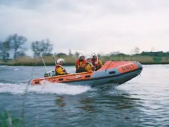 The D-class (EA16) lifeboat is a class of inflatable boat operated since 1987 by the Royal National Lifeboat Institution of the United Kingdom and Ireland. It has been replaced operationally by the D-class (IB1), but many are still used as part of the relief fleet, as boarding boats for the larger classes of lifeboat[1] and by the RNLI Flood Rescue Team.