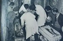 After their arrival, the men went to the Yaizu Public Hospital, where the surgeon, Oi Toshiaki, applied a zinc ointment to their faces and sent them home. On March 15, 1954, engineer Yamamoto, deckhand Masuda, and 5 others who were said to make up the "elderly" crew members were sent to the Tokyo University Hospital for treatment.[14] There, they tested Masuda's bone marrow and found his white blood cell count at half the normal level.[15] Japanese biophysicist Nishiwaki Yasushi immediately traveled from Osaka to Yaizu to examine the crew and their boat. He quickly concluded that they had been exposed to radioactive fallout and wrote a letter to the chief of the US Atomic Energy Commission (AEC) asking for more information on how to treat the crew. The crew members, suffering from nausea, headaches, burns, pain in the eyes, bleeding from the gums, and other symptoms, were diagnosed with acute radiation syndrome. The US did not respond to Nishiwaki's letter or letters from other Japanese scientists requesting information and help. However, the United States did dispatch two medical scientists to Japan to study the effects of fallout on the ship's crew and to assist their doctors. The remaining crew members were quarantined in Yaizu North Hospital with all of their clothes and belongings buried on the property. High levels of radiation were found in the men's hair and nails, and so the hospital was forced to cut off the rest of their hair.[16]
