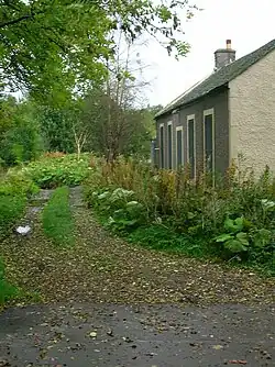 A rural school that lay near the Blair Estate is recorded in a photograph[23] and is shown on old Ordnance Survey maps. In 1856 the school is marked as 'Blairmains' located on the junction onto the lane to Templelandmuir with two buildings, one possibly the teacher's residence and the school room in what may have been a playground. A well is nearby, reached by a path running from the two buildings and a small building was located a few metres away, just the other side of the Blair Estate boundary wall.[24]