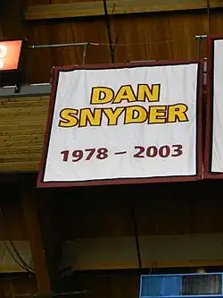 The following season, Atlanta dedicated the season to Snyder and Heatley, while further honoring Snyder with a patch displaying his number 37 on it and painting the same logo on the boards.[9][11][12] Snyder was further honored with the creation of The Dan Snyder Memorial Scholarship. The scholarships were to be given to three recipients from the Elmira area.[13] On December 31, 2003, the Thrashers played the Detroit Red Wings; during the game both teams wore the commemorative patch.[11] Following the game the NHLPA auctioned off the game-worn jerseys with the proceeds going towards the scholarships; the resulting auction raised $56,029.[13] The Chicago Wolves paid tribute to Snyder by renaming their community service award the Dan Snyder Man of the Year Award,[14] while the OHL renamed their Humanitarian of the Year trophy in his honor, making it the Dan Snyder Memorial Trophy.