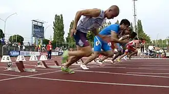 In 2010 he won a triple gold at the Belgrade Championships:[44] 100 m, 400 m and 4 × 100 m.