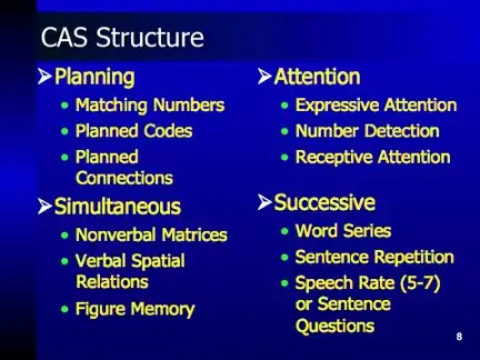 - ^ a b Naglieri, J. A., & Das, J. P. (1997). Cognitive Assessment System. Administration and scoring manual. Interpretive handbook. Itasca, IL: Riverside.