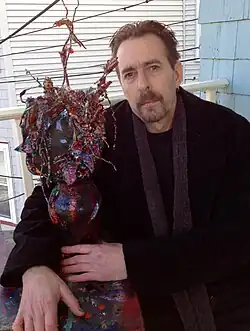 In 2008, David was diagnosed with lung cancer and struggled through therapy for some time. While in treatment at Dana–Farber Cancer Institute he began recording a visual diary of the experience including doing paint-studies of the Infusion Rooms. This became the basis for his first solo exhibition "Hotel Chemo", a collection of paintings and writings.[20] Cancer radically changed his artistic outlook.[20] From 2008 up to the time of his death in 2014, he only issued limited editions shirts and his main focus shifted toward process art through his painting, illustration, sculpture and multi-media projects. In particular, he focused on surrealist automatism as healing tool.[20][21] In his final years, he is bent on capturing specific moments in the creation of a painting, moments when he pauses and just for that second, the painting is complete. He used resin to preserve these moments, which he called "skins".[22][23]