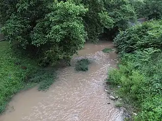 The creek is paralleled by county roads for much of its length, and by West Virginia Route 601 for a portion of its course through South Charleston. Hiking trails follow the creek in the Kanawha State Forest.[5][7]