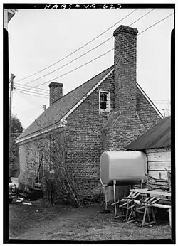 By the first decades of the nineteenth century the jailer's house was already sorely in need of repair, and consequently the county began to study the possibility of finding an alternative use for the property. At around the same time a state law had been passed requiring provision of separate facilities for debtors and felons. Thus, in 1824 a committee that was set up by the county court reminded that body that the law did not actually require the county to provide quarters for a jailer; furthermore, such an arrangement was highly unusual, if not unheard-of, in any other county in Virginia. Consequently, it was recommended that the house be reappropriated and reconfigured to serve as a debtors' prison, especially as it was thought that the proximity of the jailor's house to the jail posed a security risk. The committee held that little work needed to be done to convert the jail to its new purpose, saying "that iron bars to the windows of inch iron and oak Batton doors to be hung outside, is all that is necessary to be done to the said house, to answer the purposes intended, because it is believed that debtors have no inducement to brake [sic] prison, the Law authorizes them with little trouble to discharge themselves whenever they wish so to do.[3]" The conversion was finished quickly,[8] and the house served in its new capacity until 1849,[4] when imprisonment for debt was discontinued in Virginia. The old jail and wall were demolished by the county in 1909; the debtors' prison was turned over to the Drummondtown Branch of Preservation Virginia (formerly known as the Association for the Preservation of Virginia Antiquities). That organization undertook a partial renovation of the property in 1911, revisiting it for a fuller restoration in 1953. From 1911 until 1927 the building was used as a library; today it is a museum of local history,[3] and is furnished to represent a typical middle class home of the eighteenth century.[9] The Accomac debtors' prison was surveyed by the Historic American Buildings Survey between 1958[3] and 1961, when it was found to be in good condition; the formal report was placed on file in 1961.[7] The building is open by appointment.