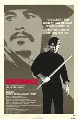 Defiance is a 1980 American action neo noir crime film directed by John Flynn and starring Jan-Michael Vincent, Art Carney, and Theresa Saldana. The film was an early Jerry Bruckheimer production.
