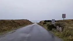 Sign board at beach entrance with warning about speed limit, drift wood, waves, etc.