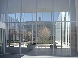 Designed by Moriyama & Teshima Architects in collaboration with the Pritzker Prize–winning architect Fumihiko Maki,[10] the Ottawa Delegation is the first building in the world that will represent the Ismaili Imamat and its institutions.[3] It is configured as an elongated, rectangular ring, surrounding an interior atrium and an exterior courtyard that features a traditional Chahr-bagh Islamic garden.[1][2] The building rests on a solid linear granite podium, and is covered by a glass dome through which light illuminates the atrium and courtyard.[1] The building as a whole is inspired by natural rock-crystal and is an interplay of visual clarity, opacity and translucency. It houses meeting rooms, exhibition areas, a lecture theatre, resource center, and private apartments.[3]
