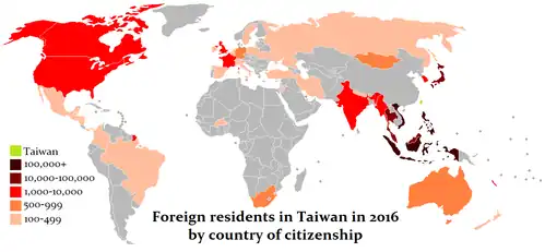 - ^ "Foreign Residents-by Nationality". National Immigration Agency, Ministry of the Interior. 2018-11-28. Archived from the original on 2018-12-18. Retrieved 2018-12-18.
