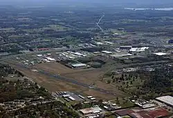 On June 30, 2007, a Cessna Citation I aircraft attempting to land at the airfield instead crashed into a nearby house, killing the pilot and a woman on the ground.[7] Wet conditions, combined with pilot error in landing too far down the runway, prevented the plane from having enough room to either safely stop or to attempt another takeoff. The plane continued off the runway until colliding with a wall and then the house, which was located 500 feet away. Both the passenger and the other occupant of the house survived the crash.[8] A similar incident occurred in 1990, when a plane crashed into a fence and house near the airport, killing the co-pilot.