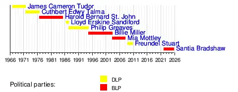 - ^ "Caribbean Elections | Cabinet of Barbados - Errol Barrow Administration 1971 -1976". www.caribbeanelections.com. Archived from the original on 11 May 2022. Retrieved 2022-01-29.