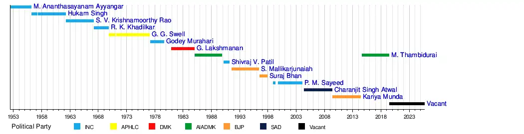 VacantKariya MundaCharanjit Singh AtwalP. M. SayeedSuraj BhanS. MallikarjunaiahShivraj V. PatilM. ThambiduraiG. LakshmananGodey MurahariG. G. SwellR. K. KhadilkarS. V. Krishnamoorthy RaoSardar Hukam SinghM. Ananthasayanam Ayyangar
