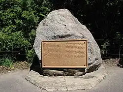 The legend[6] recounts that around 1810 during the construction of the main road to Deschaillons-sur-Saint-Laurent (now Route 132), a group of workers tried to move a huge rock approximately 6 feet (2 meters) high by 3 feet (1.5 meters) wide. The group decided to take their meal break and come back with horses to make their work easier. In the meantime, the giant of Deschaillons, Modeste Mailhot, who was seven feet and four inches (2.23 m) in height and weighed no less than 619 pounds (281 kilos), found himself alone with the rock and rolled it several feet out of the way. A living legend was born into the history of Deschaillons. This stone is still found along the Marie-Victorin road, 3.8 km east of the village centre, with a plaque which describes the feat which earned this colossus of Deschaillons the titles of "Giant Canadian" or "Modeste Giant". This commemorative plaque, initially made of copper, has been stolen three times over the past ten years.