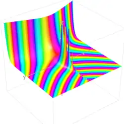 Another popular use of the calculator involves the creation of graphic arts using equations and inequalities.[19] Some of these projects have included features such as 3D via parameterization, and with the use of RGB and HSV colouring introduced in late 2020,[20] artwork with custom colouring, as well as the domain colouring of complex functions. With new performance updates, graphs that include the Mandelbrot set and the Ducks fractal can be made on Desmos. Features such as simulations and tickers also allowed users to create functional interactive games. The usage of these features can be found in Desmos's annual art contest.[21]