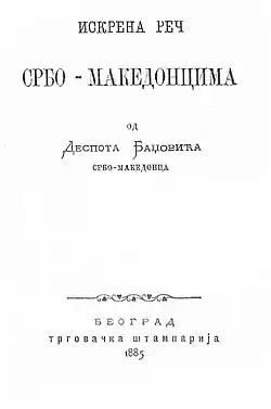 • Искрена реч Србо-Македонцима. Belgrade: Трговачка Штампарија. 1885.