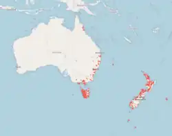 Distribution of D. menziesii in Australia and New Zealand