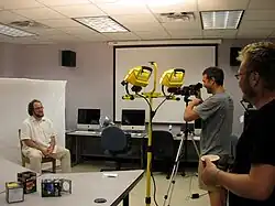 DWRL staffers experiment with lights, cameras, and backdrops for a video series on writing processes