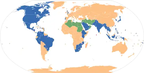The first day of the week in various countries according to the Common Locale Data Repository project:[7]