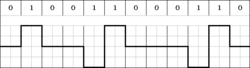 To create a digital signal, a signal must be modulated with a control signal to produce it. The simplest modulation, a type of unipolar encoding, is simply to switch on and off a DC signal so that high voltages represent a '1' and low voltages are '0'.