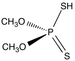 Dimethyl dithiophosphoric acid is the organophosphorus compound with the formula (CH3O)2PS2H. It is the processor for production of the organothiophosphate insecticide Malathion. Although samples can appear dark, the compound is a colorless, distillable liquid.[1]