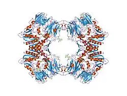 In molecular biology, the dipeptidyl-peptidase IV family is a family of serine peptidases which belong to MEROPS peptidase family S9 (clan SC), subfamily S9B (dipeptidyl-peptidase IV). The protein fold of the peptidase domain for members of this family resembles that of serine carboxypeptidase D, the type example of clan SC. The type example of this family is Dipeptidyl peptidase-4.[1]