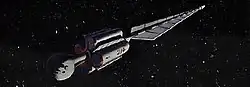 The United States Spacecraft Discovery[a] is a fictional spacecraft appearing in the Space Odyssey series by Stanley Kubrick and Arthur C. Clarke. The ship is a nuclear-powered interplanetary spaceship, crewed by two men and controlled by the on-board computer HAL 9000. The ship is destroyed in the second novel and makes no further appearances.