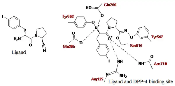 X-ray structures of DPP-4 that have been published since 2003 give rather detailed information about the structural characteristics of the binding site. Many structurally diverse DPP-4 inhibitors have been discovered and it is not that surprising considering the properties of the binding site:[9]